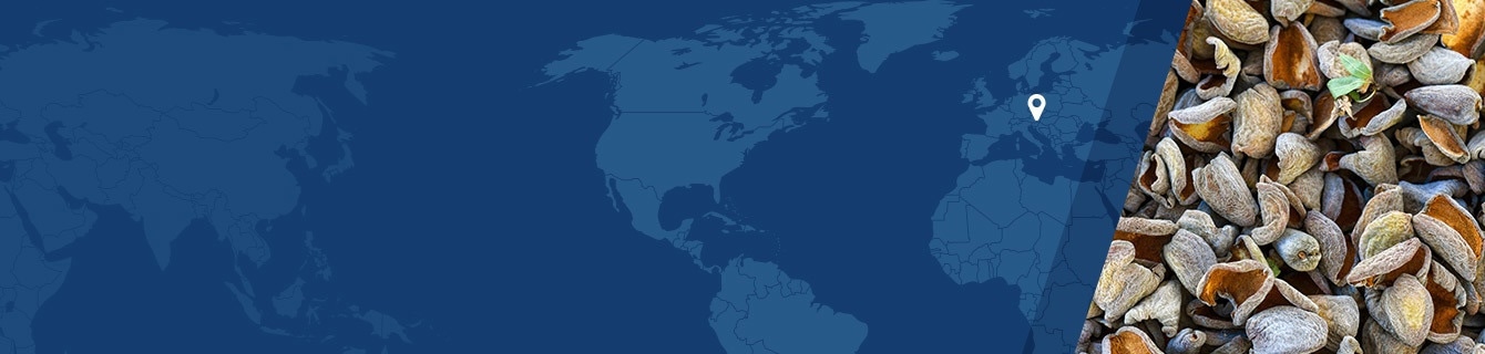 Our collaboration with the Italian company Damiano Organics (a global leader in the production and transformation of organic dried fruit like almonds and hazelnuts, among others) gave us access to agricultural waste (almond shells).