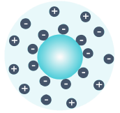 Counterions surround charged particles in aqueous environments, forming an inner Stern layer and an outer shear layer. Zeta potential refers to the electrical potential at the shear layer interface.