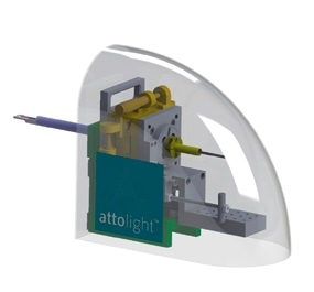 The Attolight Mönch 4107 realizes all this. First, its collection optics is crafted by Attolight engineers with maximum care to attain unparalleled curvature radius and miniaturization level; it is so thin that it can be housed in most aberration corrected or analytical STEMs available in the market, while maintaining sufficient degrees of freedom and stiffness to allow for flawless sub-micrometer alignment of the mirror while installed in the STEM.