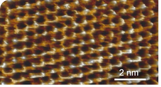 The image shows atomic lattice of mica in buffer, taken in closed-loop on an inverted microscope.
