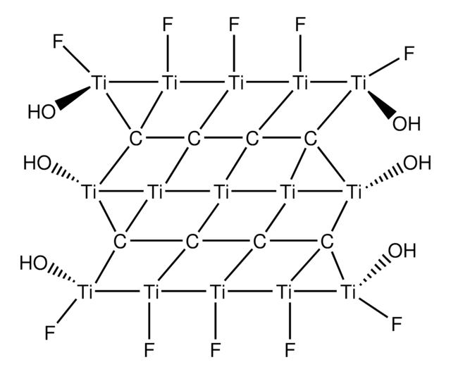These hydrophilic, conductive 2D ceramics are made by selectively etching the MAX phases (910740, 910767, 910775, 910759, 910821, 910708) of their precursor materials top-down. The resulting Mn+1AXn is the typical form of these MXenes; however, some are also made from M2A2X and Mn+1AxXn+x.